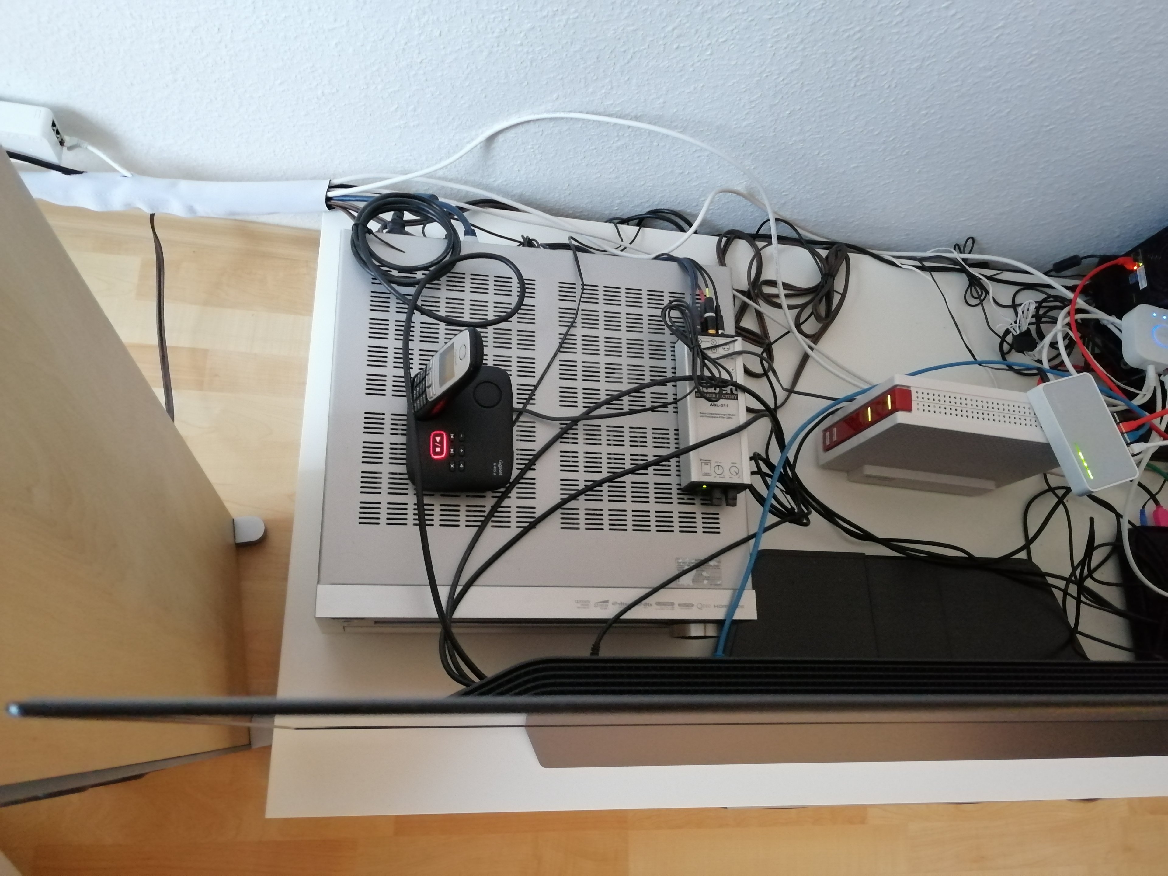 Hab etwas optimiert, die PS4 musste nach Außen, damit man Zugriff auf das Laufwerk hat, ein oder zwei kürzere Netzwerkkabel könnte man noch verbauen, das war es dann aber auch, es sind nunmal unzählige Kabel, was will man machen.