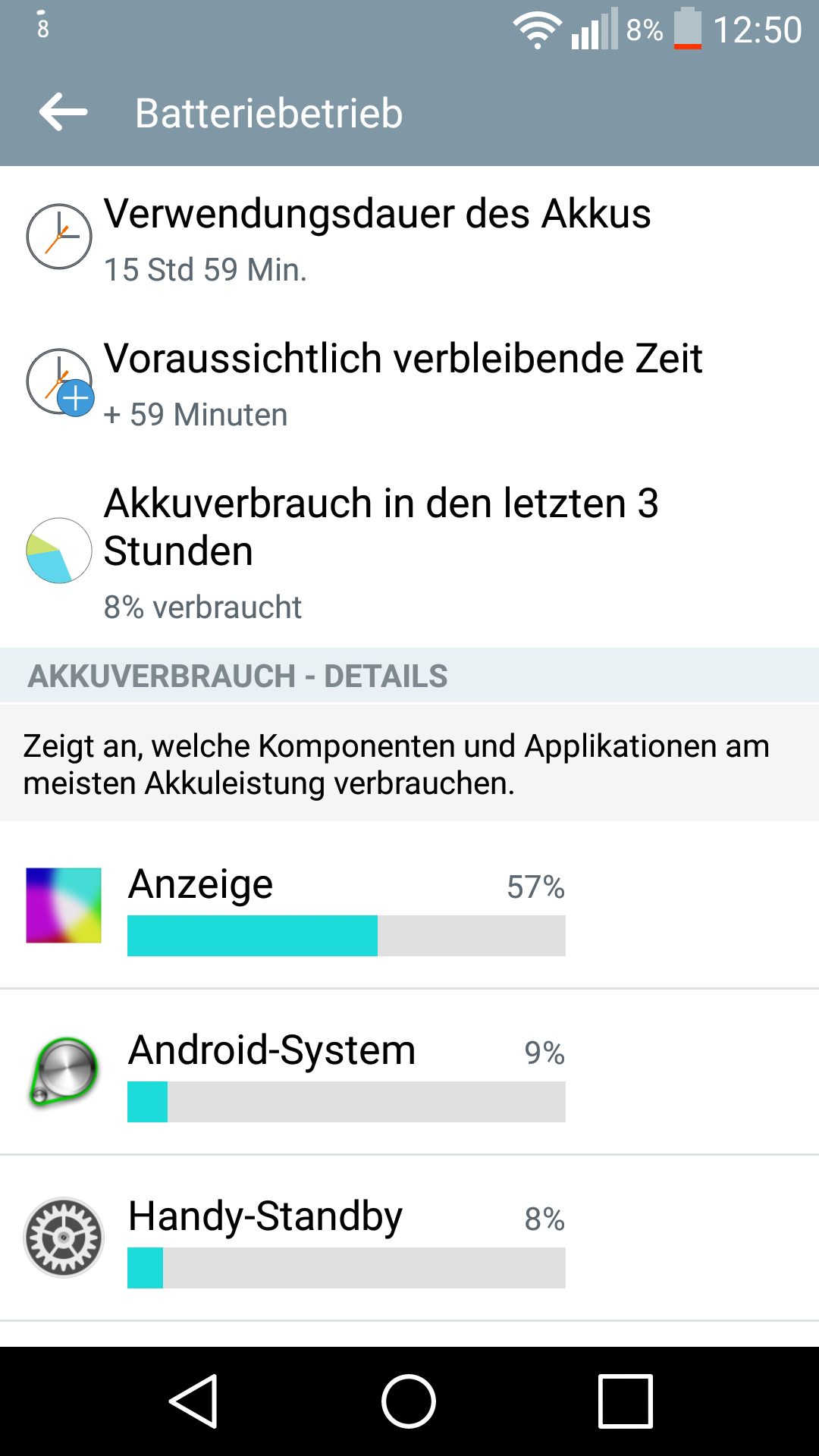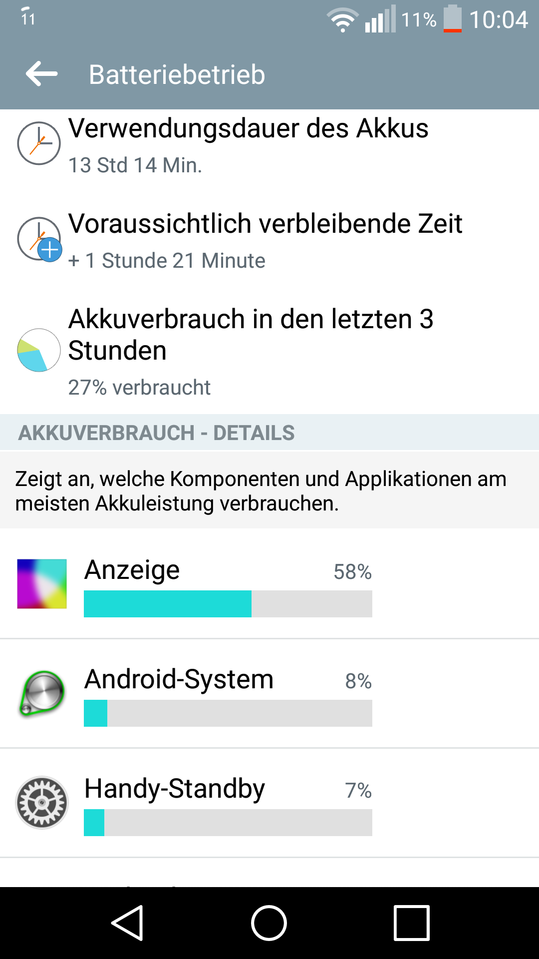 So im Moment bin ich bei einer Display On Zeit von 7:02 Stunden angekommen, und habe immer noch 8% Akku übrig was dem entspricht was ich mit meinem G2 im Neuzustand unter KitKat erreicht hatte, die Akkulaufzeit des G2 unter Lolipop hat sich damit bei mir um gut 2 Stunden verlängert und ist der Hammer :daumen:, zum Vergleich vorher unter KitKat hatte ich zum Schluss nur noch 4,5 bis maximal 5 Stunden DOT geschafft, und da war der Akku auf 2% runter. ;)