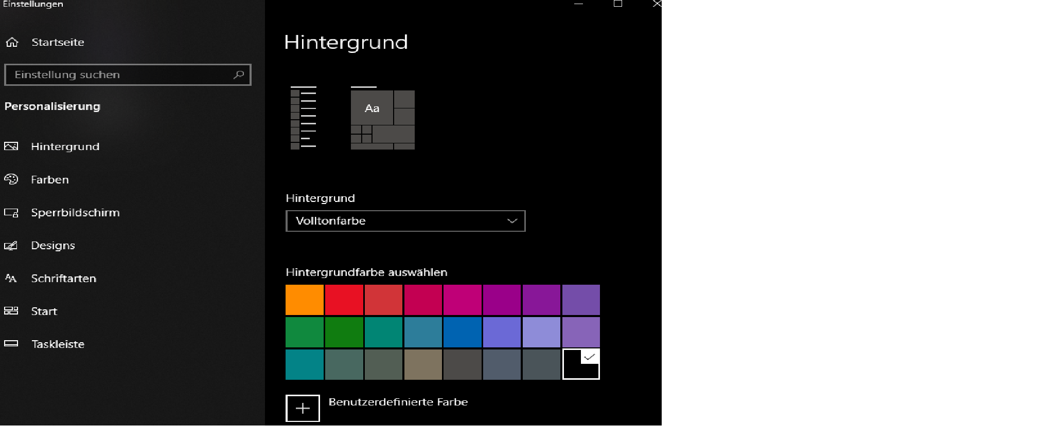 Jepp einfach win einstellungen, statt bild volltonfarbe wählen. Haste alle farben dieser welt. Braucht man nicht auf irgendwelche seiten gehen oder sonst was, da sind die wichtigsten farben eh schon drin und bei jedem gleich