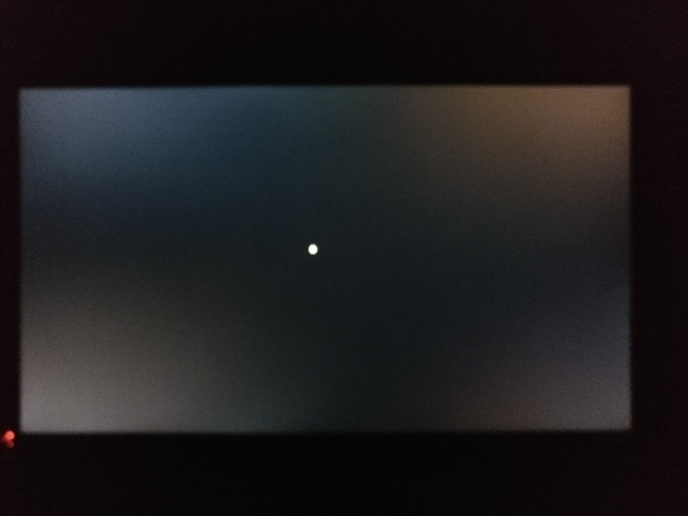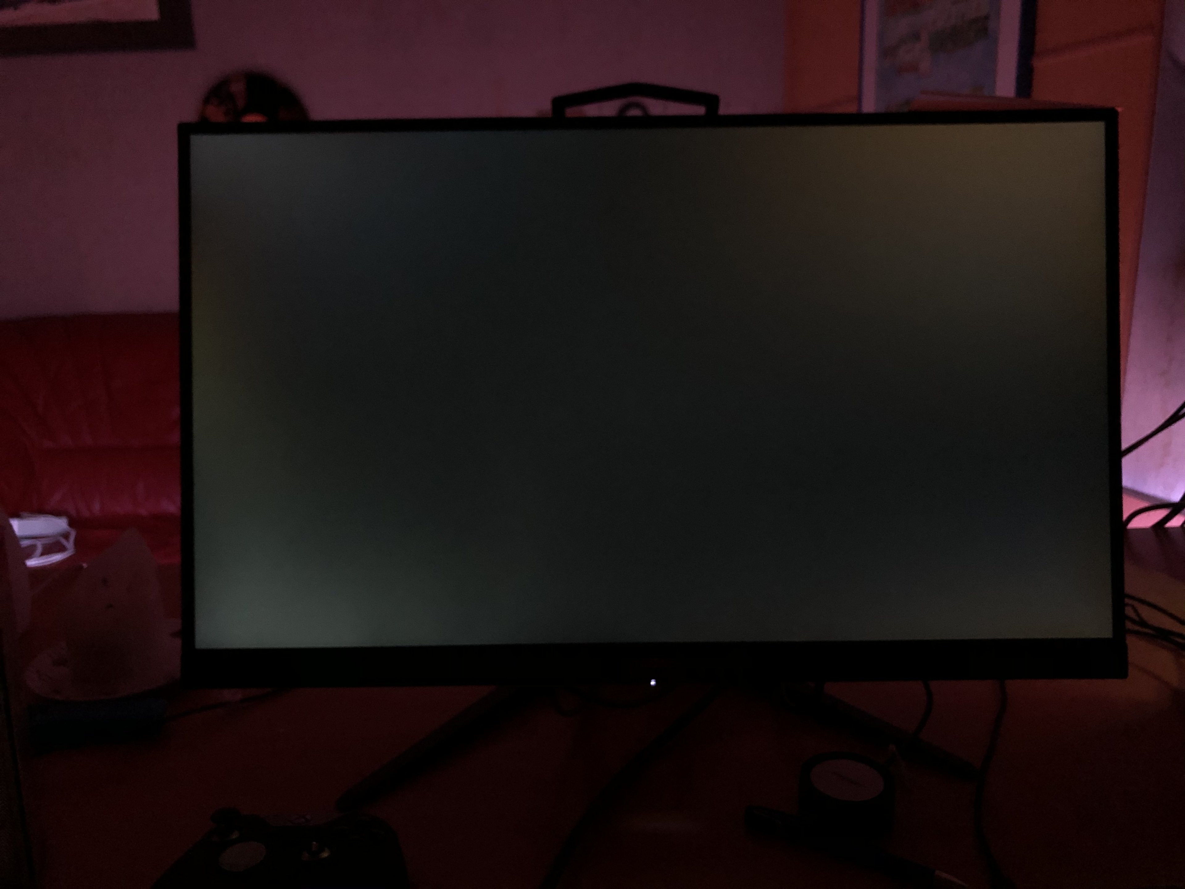 So, habe den Monitor nun mal im dunkeln betrachtet und versucht ein Bild zu machen. Das ist sehr schwer ein halbwegs realistisches Bild zu bekommen. Musste zum Bild machen deutlich weiter mich vom Monitor entfernen, deswegen gibts nur eins mit Zoom. Aus der Nähe abfotografiert hat man nur helle Ecken gesehen, die das gesamte Bild überstrahlt haben.