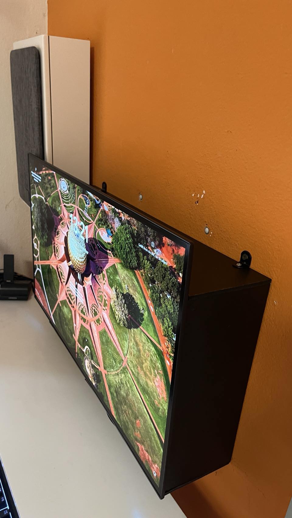 Habe ihn an einer flexiblen Wandhalterung d.h. Referenzmaße wären dafür wären: