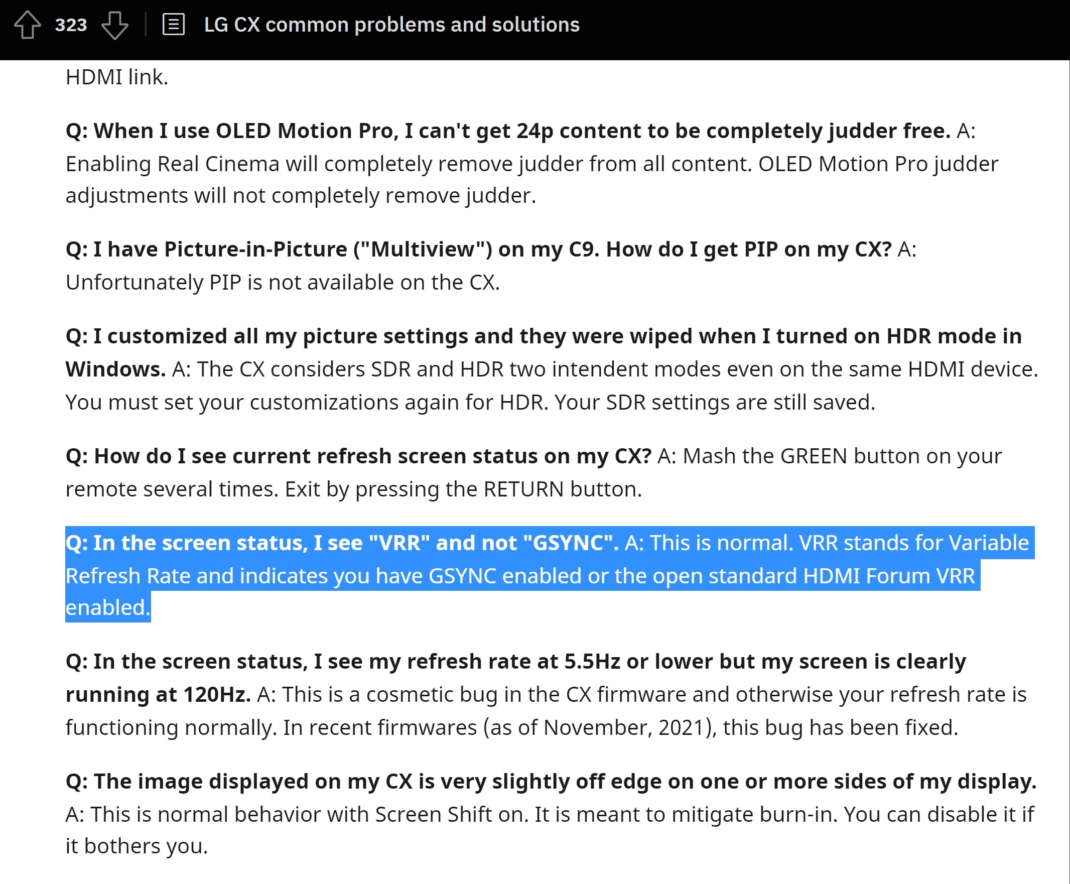 Seit Freitag steht ein LG C2 bei mir zuhause bin auch super zufrieden ! Er ist an meinen PC angeschlossen ich habe eine RTX 30xx er Serie . Mit ist aufgefallen das wenn ich ein Spiel starte , oben rechts in der Ecke in klein Gsync steht , aber der Game Optimizer von LG VRR anzeigt . Habe ich jetzt Gsync VRR oder beides ?🤔