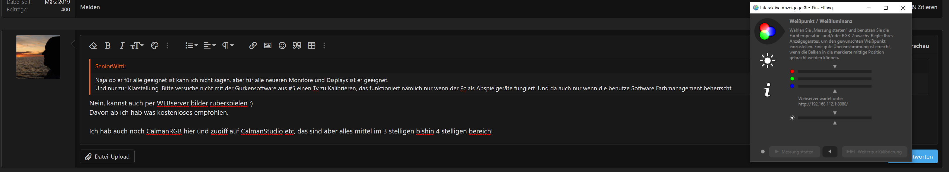 So habe das mit Displaycal mal via Webserver probiert. Ist ja nichts anderes.