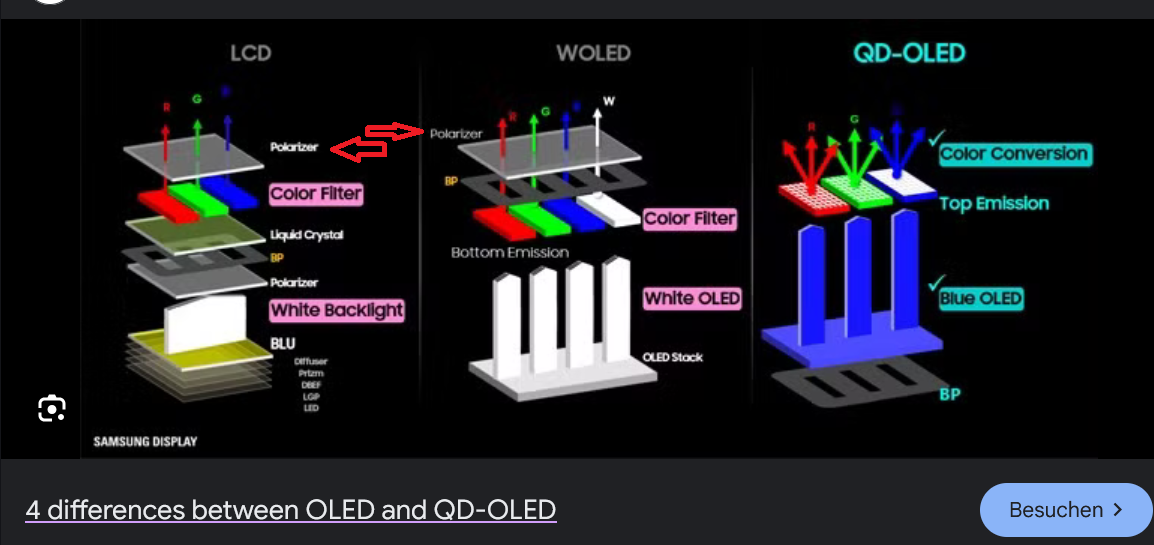 QD-OLEDs haben Generell kein Polarizer und is das Zimmer Licht zu hell oder wird das Panel