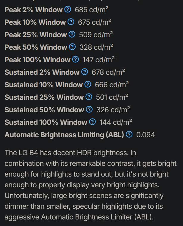 Die Karten werden in 2025 nun neu gemischt beim S90F im Vergleich zum C5 .. die Größeren C5s haben zugelegt und kommen nun auf so 1.200 - 1.300 Nits bei 10 % Window statt auf so 900 - 1.000 wie beim C4