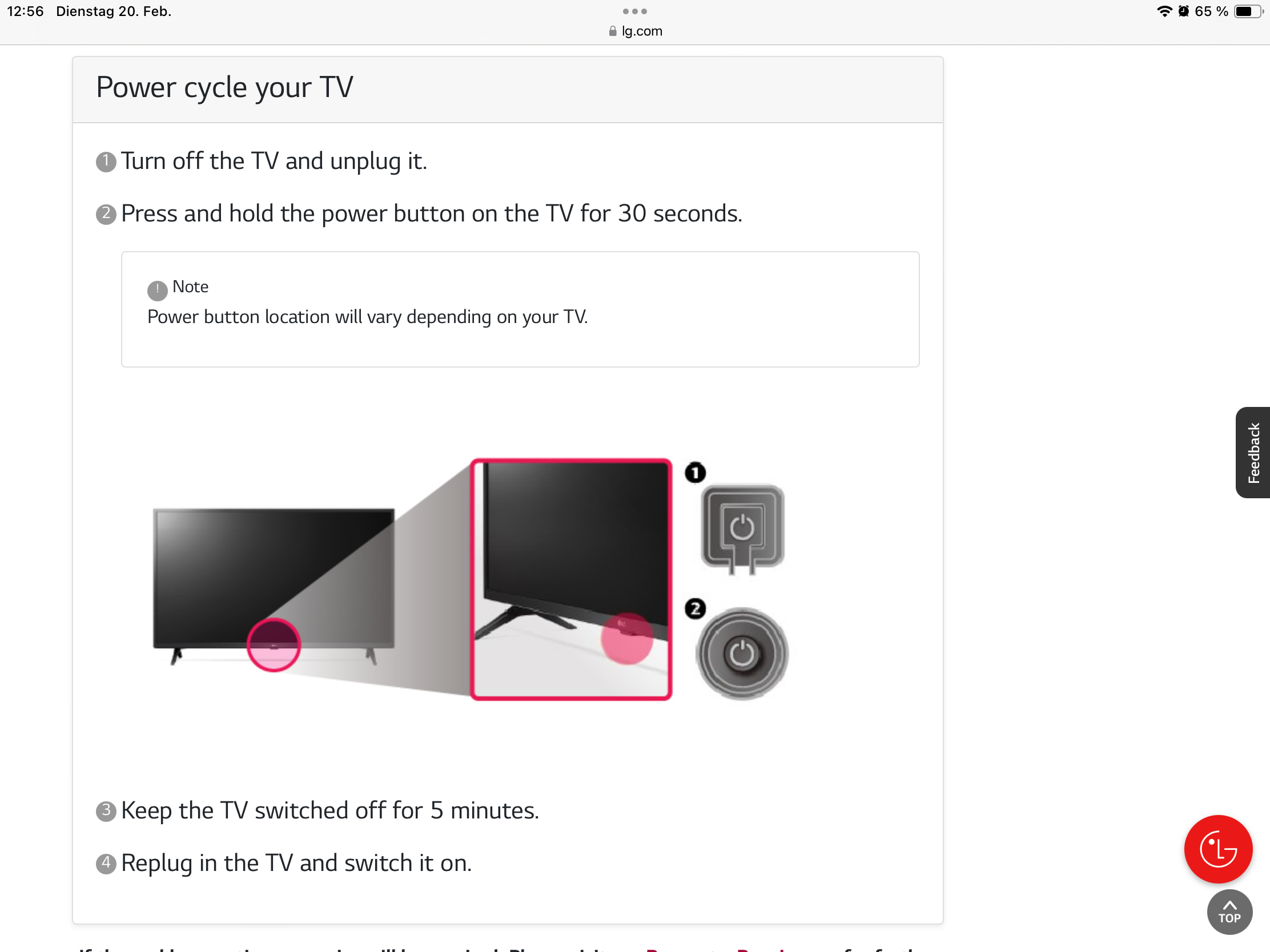 am Sonntag während des Schauens trat plötzlich ein dünner (siehe Video) weißer Streifen/Balken auf, dachte erst es liegt am Stream, habe daher die Quelle umgeschalten, leider ohne Erfolg. Dann ausgemacht und beim herunterfahren war der Streifen weiterhin bis zum "kompletten" Abschalten kurz zu sehen. Seitdem geht er gar nicht mehr an, er versucht es kurz, man hört das "Klacken" des Netztteils?, man sieht für eine Sekunde den Streifen und dann geht er wieder aus.