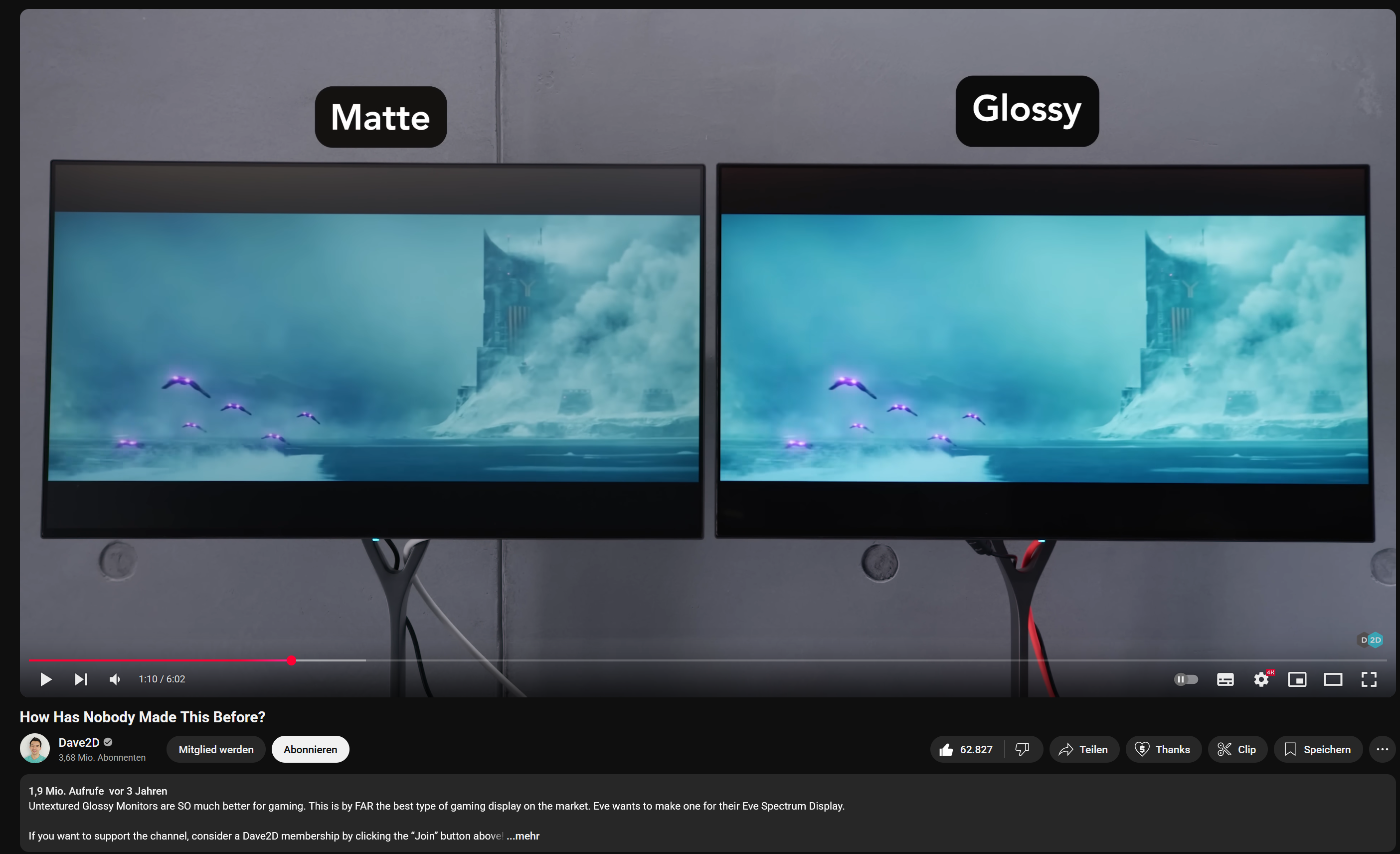 Gibt ja auch im Bereich OLED und QD-OLED Monitore welche die Matte sind und welche die Glossy sind