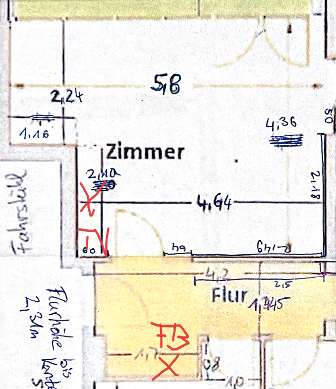 1 Garderobentür aus Holz trennt die direkte Sicht. Die Downloadrate liegt bei ca. 50Mbps und der Ping ~60ms. Von Vodafone bekomme ich eine 1000 Mbit Leitung, welches auch per LAN Kabel an meinem PC ankommt.