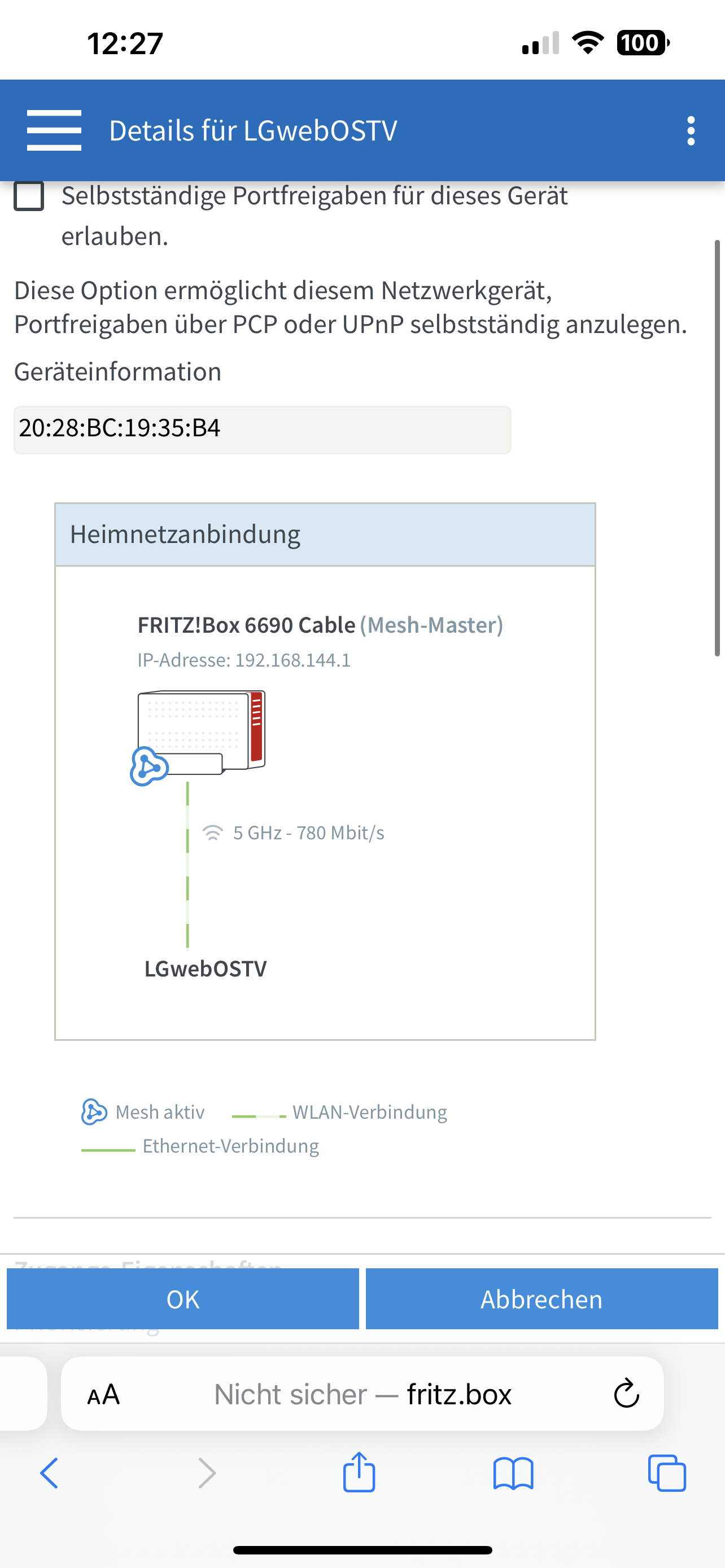 Im technischen Handbuch zum TV steht, dass der TV WLAN AC kann. Im Dashboard der Fritzbox sehe ich auch, dass der TV im mit 5GHz - 780Mbps verbinden ist. Kommt aber beim TV nicht an. WLAN Verschlüsselung ist WPA2.