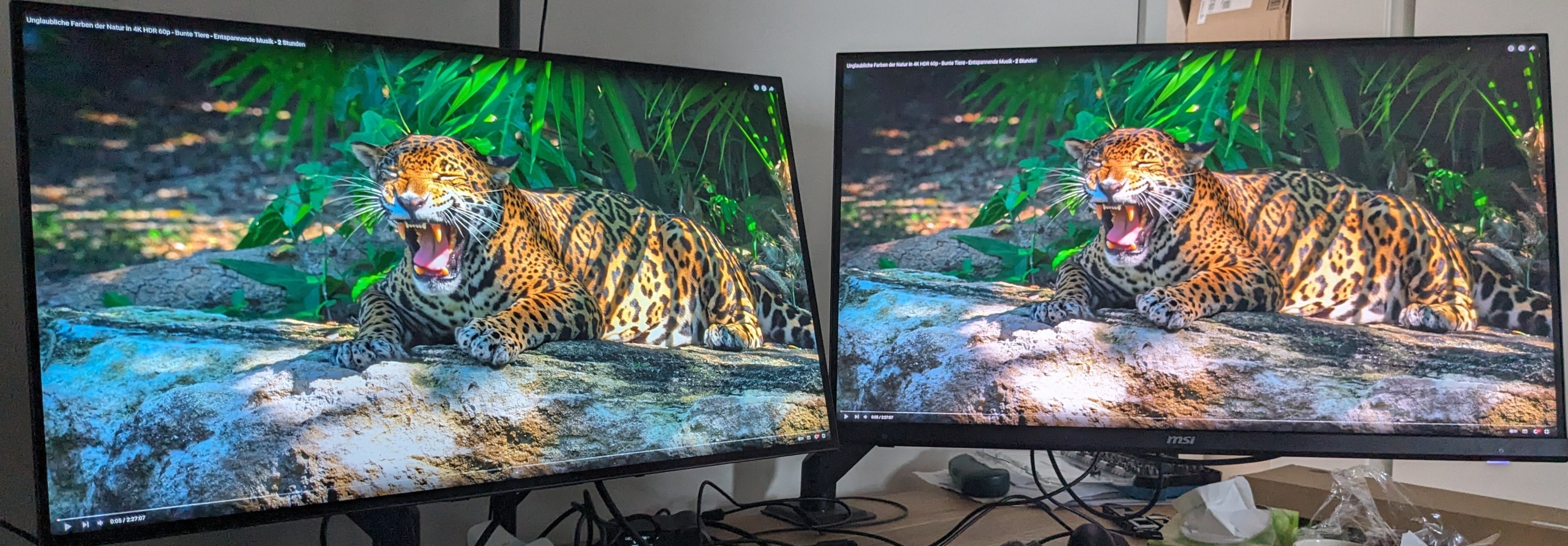 Auf den Bildern sieht der Unterschied gar nicht mal so groß aus. Wirklich zur Geltung kommt der Unterschied in eher dunkleren Räumen mit dunkleren Bildern (also mit mehr Dunkelanteil). Saubere Kontraste und Schwarzwert ist halt das, wofür OLED primär stehtCrumar schrieb:Hier noch im Vergleich mit dem MPG323UPFDE