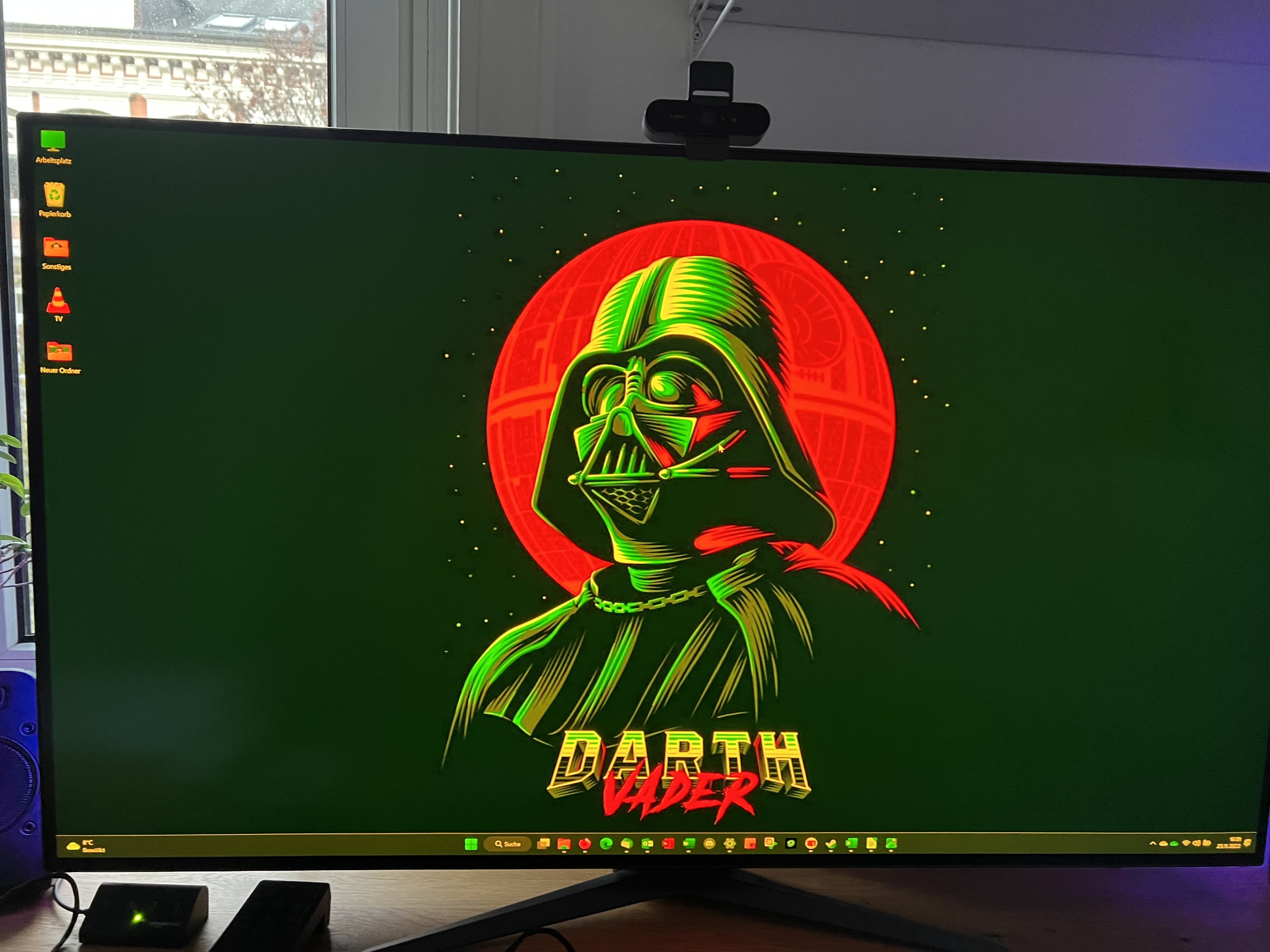 Vor einer halben Stunde dann gab es wieder diesen Grünstich. Es betrifft aber nur das Windowsbild --> siehe Anhang. Das Einstellungsmenü des Bildschirms hat diesen Grünstuch nicht. Dieser Grünstich ist jetzt schon über eine halbe Stunde da. Habe in den Einstellungen herumprobiert, die Übertaktun von 138Hz auf 120Hz wieder runtergeregelt, den Monitor vom Strom getrennt etc.