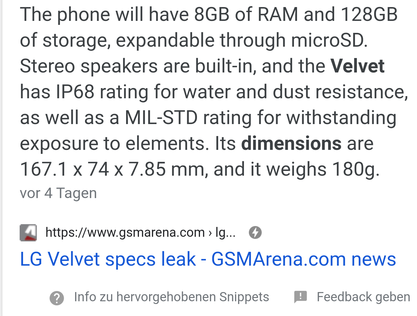 - Zur News: LG: Velvet kommt am 15. Mai mit 6,8 Zoll und 4.300 mAh