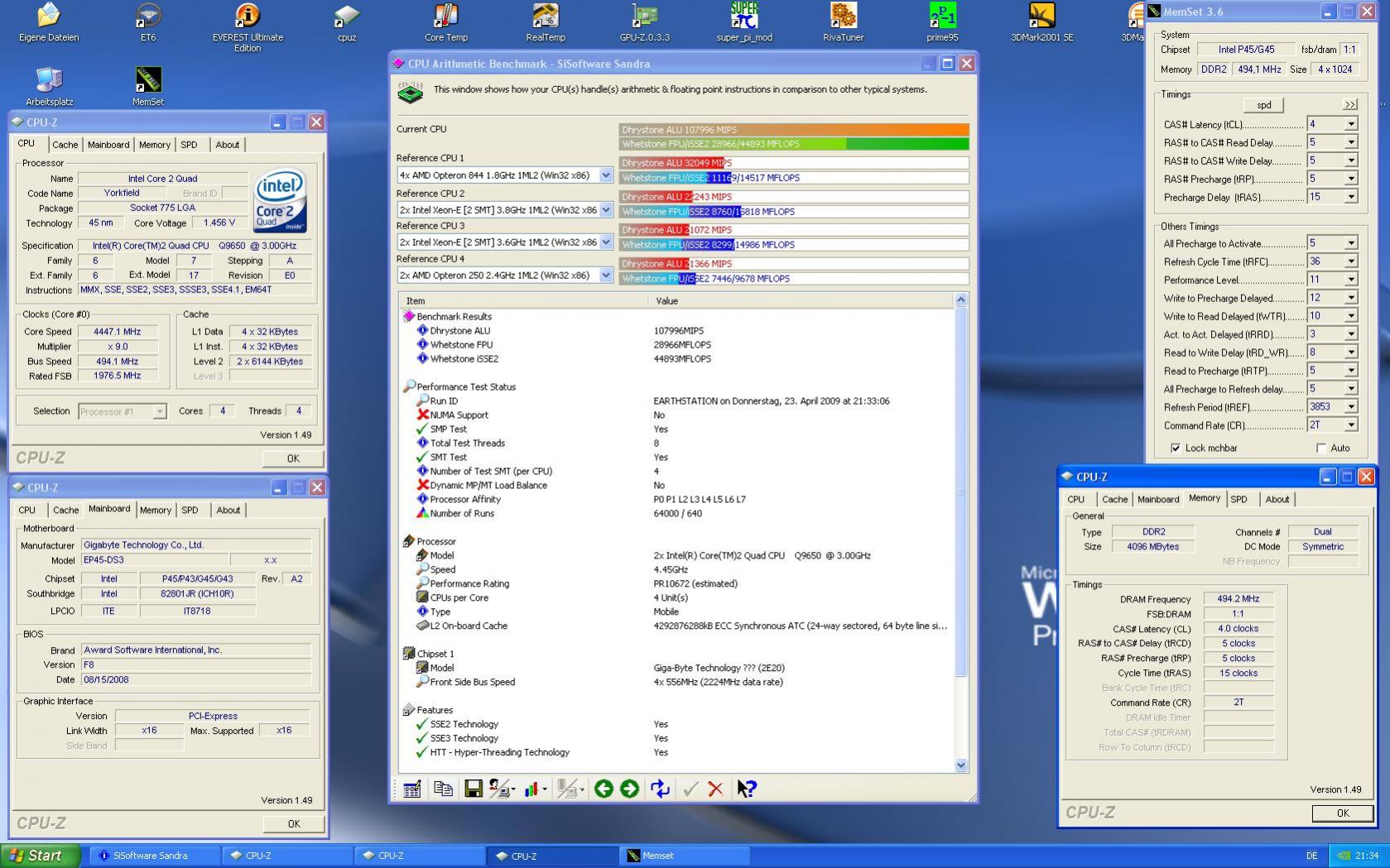 Dennoch harmoniert der X38-Chipsatz im Gegensatz zum P45 nicht ganz so gut mit einem 45nm-Quad wie meinem. Das sieht man an den Ergebnissen, z.B. bei http://www.oc-liste.de/