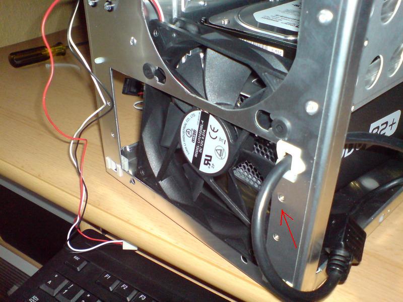 "Der Einbau der Lüfter sollte als erstes erfolgen, weil man für den Frontlüfter verpflichtet ist, die Frontpartie abzuziehen, welche sich sehr benutzerfreundlich erweist (einfach unten anziehen, sie rastet automatisch aus und ein). Dazu muss man noch den Netzteilrahmen entfernen. Dann lässt sich der eingebaute Lüfter nach unten abziehen. Man muss ein bisschen fummeln. Also nach unten vorne rausziehen."