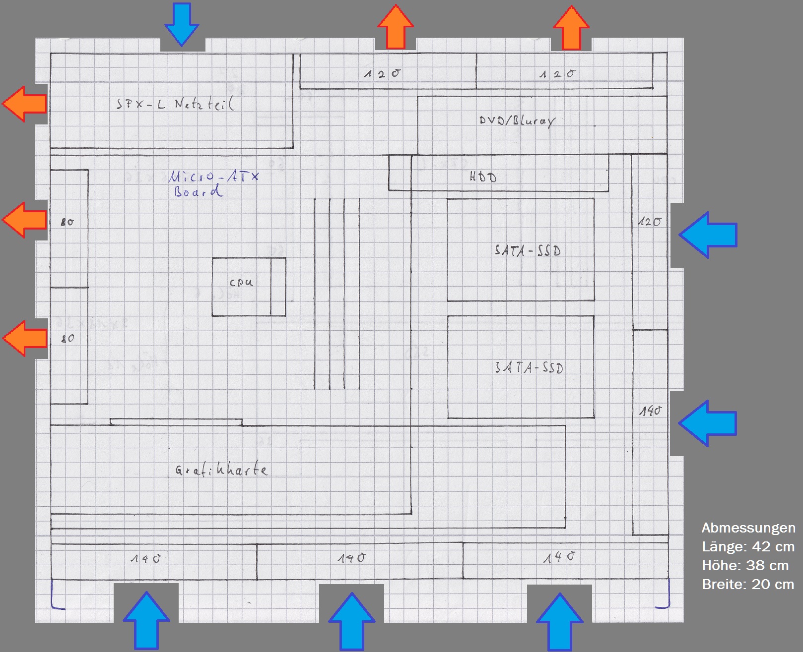 Seitlich fehlt dann die potentielle Option einen Lüfter positionieren zu können.