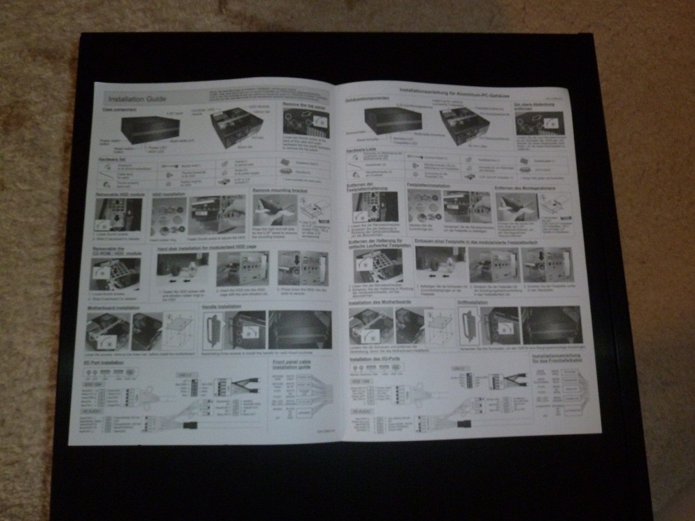 Die Bilder dürften soweit selbsterklärend sein. Beim zweiten Bild ist ein Zettel zu sehen, der eine Produktmatrix von Lian Li zeigt.