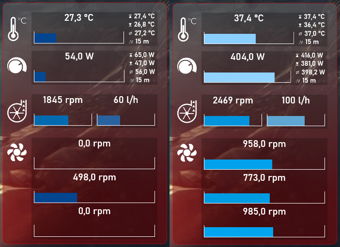 Aktuell mit 2x360 und 1x 280 Rad habe ich bei voller Auslastung Wassertemperaturen unter 40° bei noch immer ruhigen Lüftern die bei 900 / 700 laufen