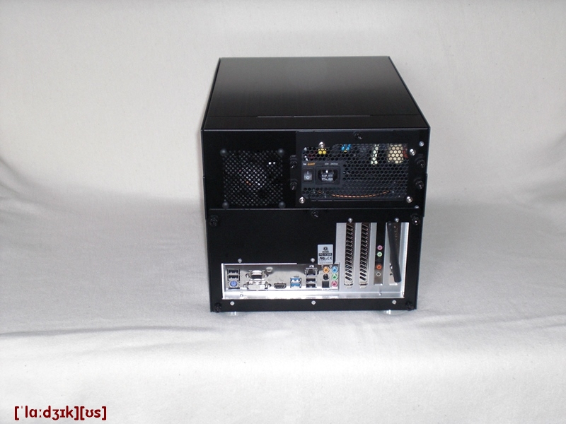 Die Netzteilhalterung ist ein wenig knifflig, es muss eine Backplate am Netzteil befestigt werden, die mit dem Gehäuse verschraubt wird. Das ganze Konstrukt sieht zwar gefährlich aus, hält aber Bombenfest.