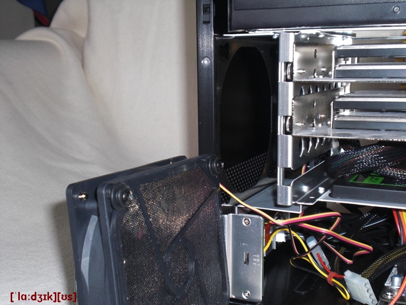 Die 120er Lüfter können wie die Festplatten einfach eingesteckt werden, ein leichteres Putzen kann ich mir nicht vorstellen, wenn man davon absieht das ein Staubfilter in der Front sitzt.