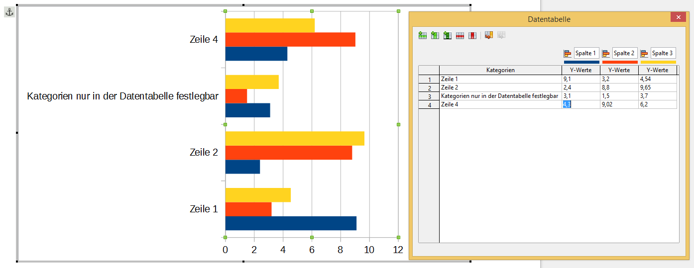 ich habe im Writer ein Diagramm hinzugefügt. Als Typ verwende ich das "Balkendiagramm". Nun kann man per rechten Maustastenklick auf das Diagramm die Diagramm-Datentabelle aufrufen.