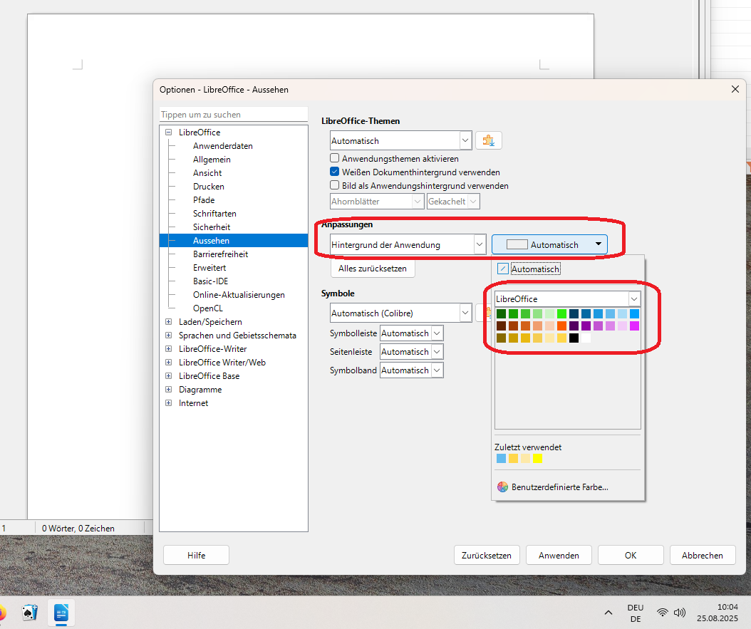 Libre Office Writer: Schwarze Ränder auf hell umstellen?