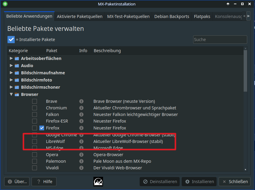 Das Bild hat null Aussagekraft. Sagt ja nichts über das Paketformat von Librewolf aus, sondern nur, dass man Librewolf in MX installieren kann. (Und das kann man in jeder Distro.)Lotsenbruder schrieb:Bittesehr