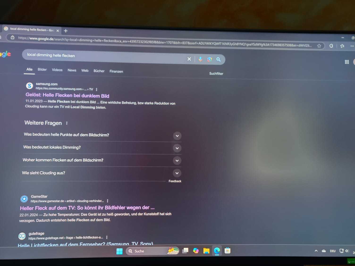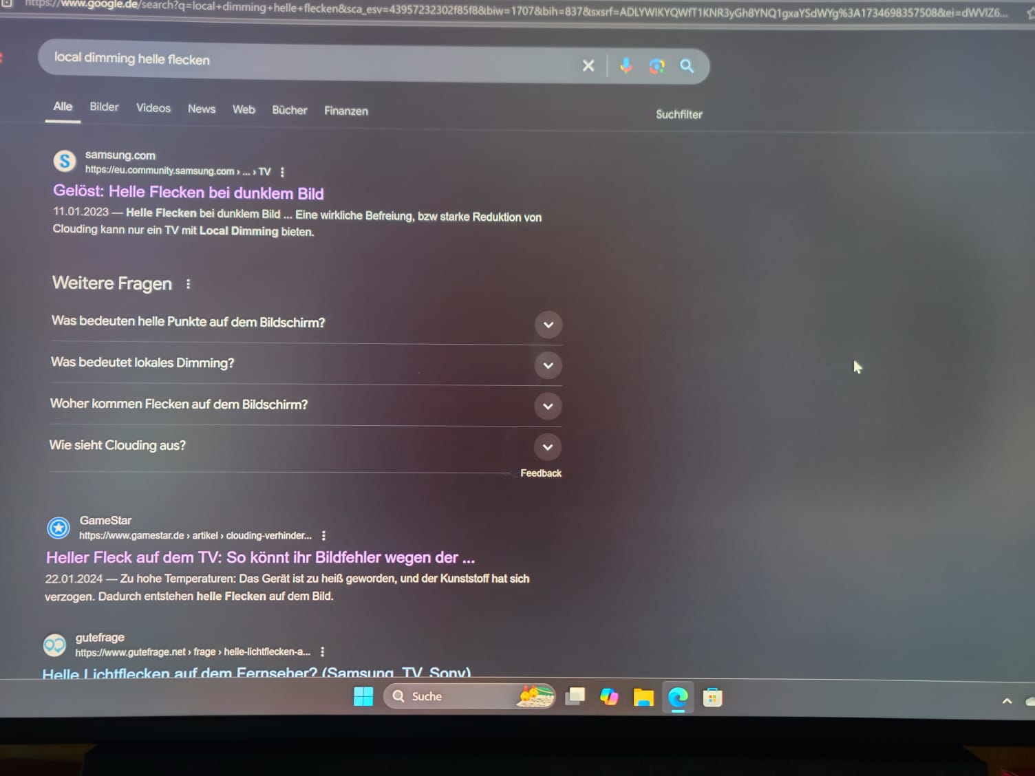 Auf einfarbigen, recht (aber nicht ganz) dunklen Flächen zeigen sich bei aktiviertem Local Dimming bizarre Lichtflecken, die verschwinden, sobald ich den Mauszeiger dorthin bewege. Wird Local Dimming deaktiviert, so besteht das Problem nicht mehr. Aber Deaktivieren ist ja nicht Sinn der Sache. Es sieht nach einer Fehlfunktion aus.