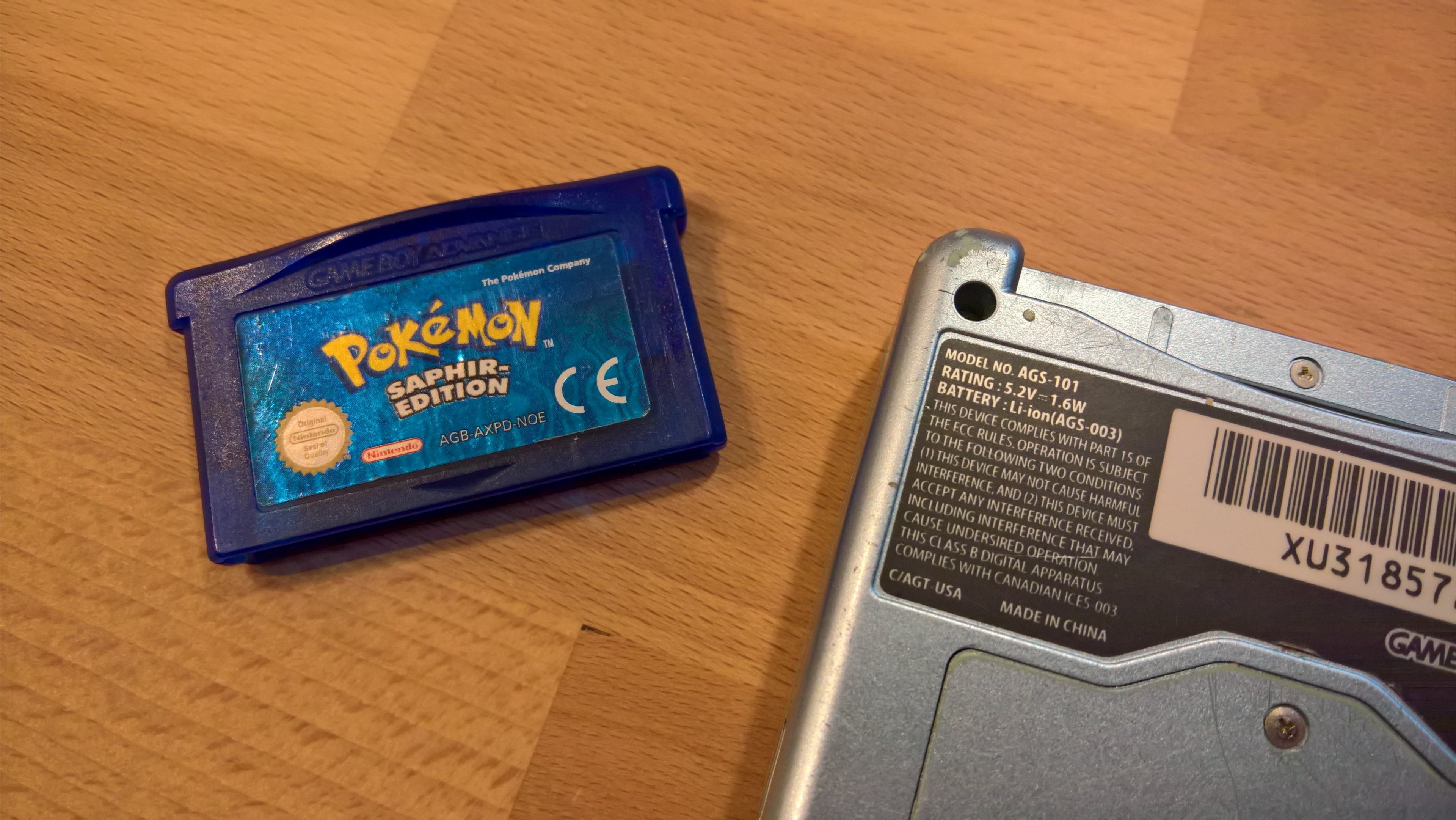 Bei eBay werden die Teile mittlerweile für über 150.- € gehandelt, obwohl der Neupreis zuletzt nur bei ca. 110.- € lag, ich könnte also einiges rausholen, aber ich bin Erstbesitzer und hab lange dafür gespart, deshalb bleibt er, wo er ist. Die Spiele habe ich soweit alle verkauft, mein Lieblingsspiel, die PoKéMoN Saphir Edition, musste ich aber behalten, auch der Spielstand von vor x Jahren exisitiert noch und wird gelegentlich fortgesetzt. Ich würde gerne genau wissen, wann ich ihn damals gekauft habe, aber die Rechnung ist leider verschwunden...