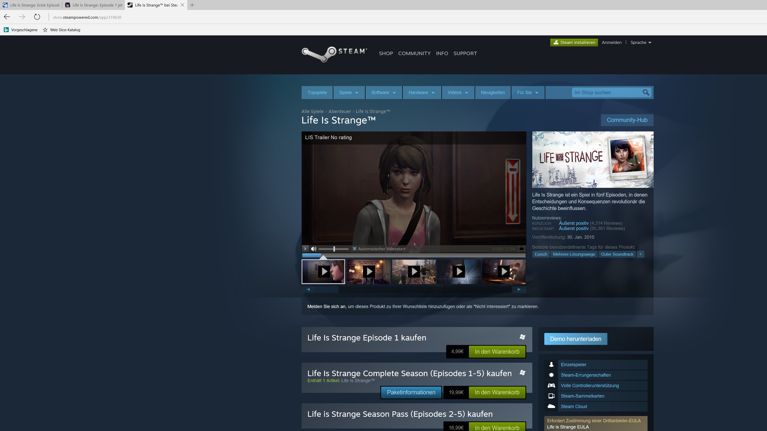 Auf der verlinkten Webseite wird auch angezeigt "Episode 1 jetzt gratis" aber wenn ich den Steam-Button nutze wird mir in Steam immer noch ein Preis von 4.99€ angezeigt.