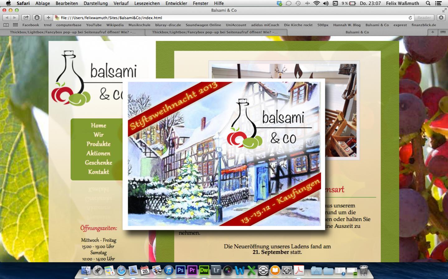 Hab schon ein bisschen gegoogelt und bin dabei auf die Fancybox gestoßen. Mein Hauptproblem dabei ist aber, dass ich nicht genau weiß, wie ich den Code richtig einbinde. Ich nutze ein fließendes Rasterlayout und habe eigentlich zwei Haupt-div-Bereiche: Einmal das Menü und den Contentbereich. Ich würde die Fancybox aber gerne zentriert über alles einblenden. Wenn ich den Code nun in eines der divs oder in den gridcontainer kopiere, taucht die Fancybox logischerweise auch dort auf.