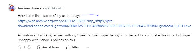 Adobe hat alles, wie ich, offensichtlich zu spät, erfahren habe zum Jahresbeginn 2024 von ihren Servern genommen. Seit dem hats nur noch die Abo Versionen - an denen habe ich aber kein Interesse.