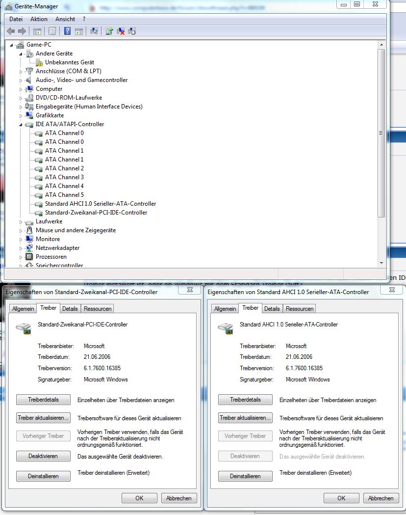 EDIT: Deshalb hat sich das Verhalten auch geändert, als du von AHCI auf IDE gegangen bist. Das gleiche könntest du jetzt auch noch einmal testen - dieses mal sollte dann im Gerätemanager der Intel IDE-Controller (kein Standard IDE-Controller) installiert sein. Vielleicht macht das einen Unterschied.