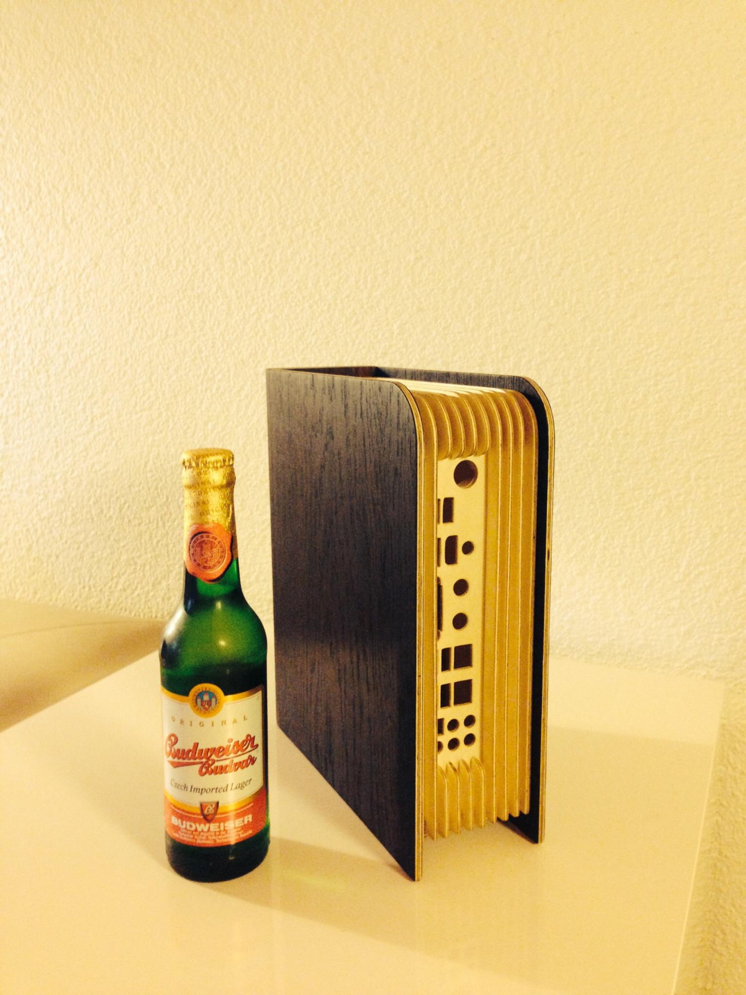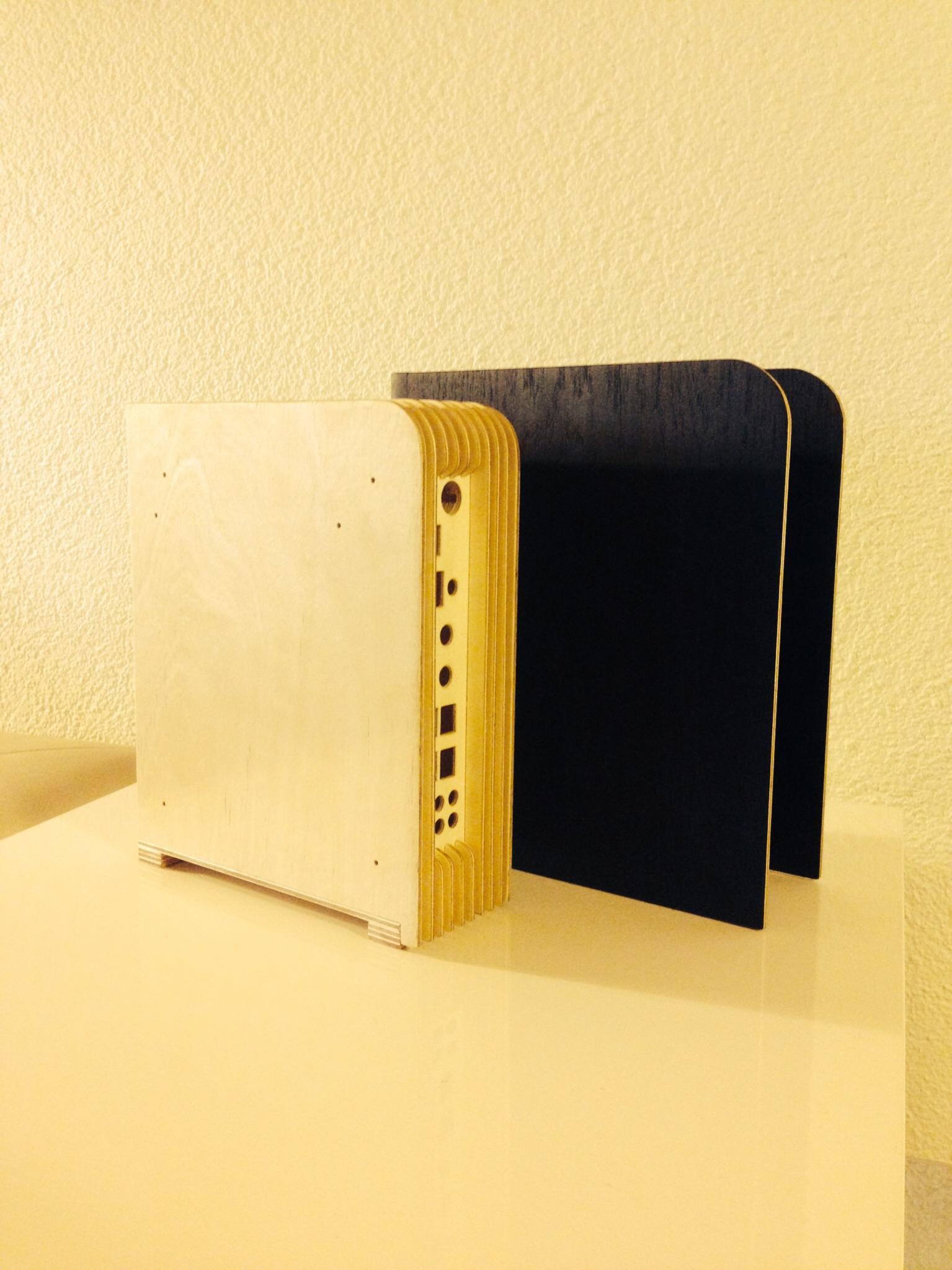 Das mit der kapazitiven Taste am "Buchrücken" werde ich mir für eine nächste Umsetzung vormerken -super Idee. Während dem Projekt hatte ich mir auch Gedanken zum On/Off-Switch gemacht. Zuerst wollte ich den Switch im Buchrücken integrieren. Davon bin ich aber relativ schnell abgekommen, da meines Erachtens die Assoziation zu einem PC rasch entsteht. Somit entschied ich mich für einen blanken Buchrücken, der allein die Maserung des Massivholzes zeigt. Dass der On-Schalter in die Blende integriert wurde, ist bestimmt nicht die praktischste Lösung - vielleicht aber die Attraktivste (?). Wie bereits angedeutet war mein Ziel ein unauffälliges, aber dennoch ein hübsches Gehäuse zu konstruieren.