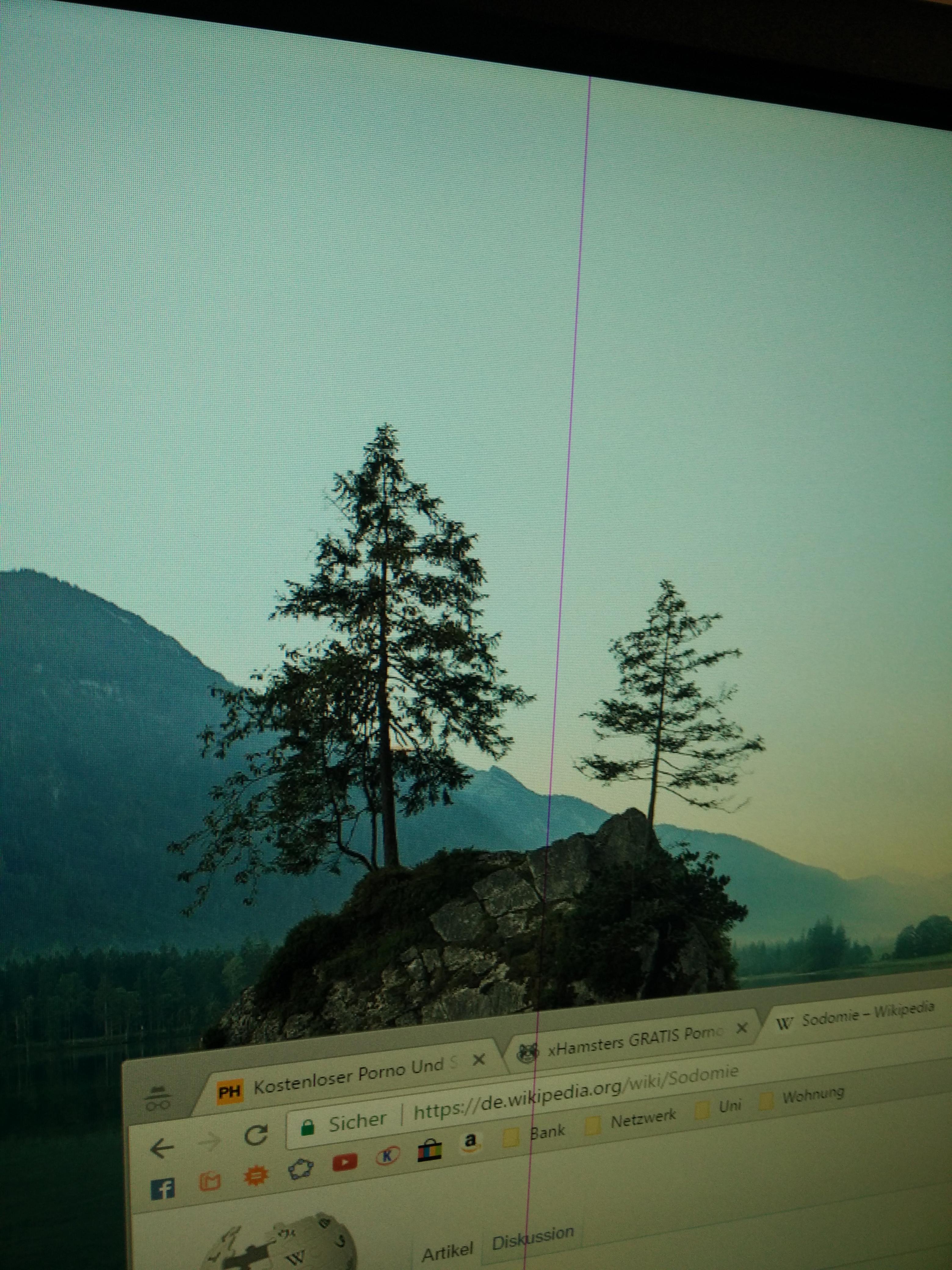 ich habe manchmal einen lila Streifen im Monitor, der lustigerweise nur über das Hintergrundbild geht, nicht jedoch über die Taskleiste. Manchmal ist er da, manchmal nicht. Wie bekomme ich den weg? Bild anliegend.