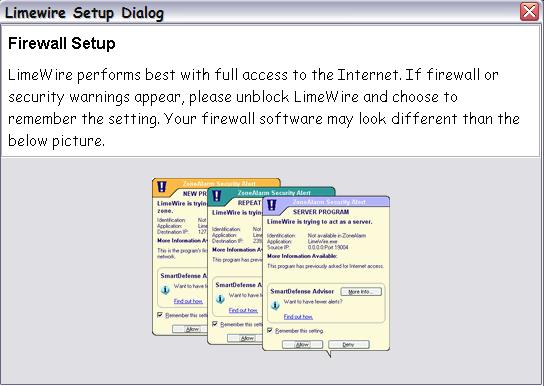 das sind warnungen das ein prog nach außen verbinden will und du musst es jetzt durchlassen oder nicht und wenn du auf deny gehst wird das programm (limewire) der zugang ins netz verboten und nichts passiert.