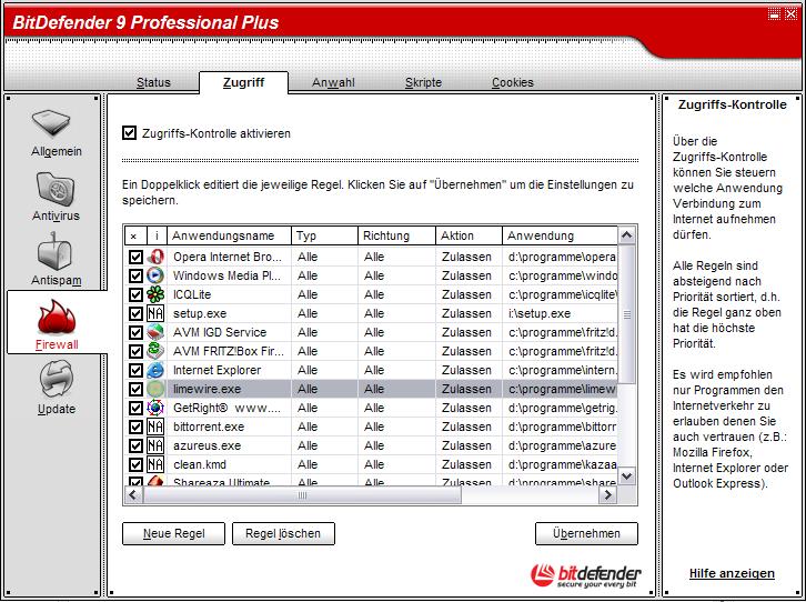 bei bitdefender sind übrigens alle ports für limewire zugelassen