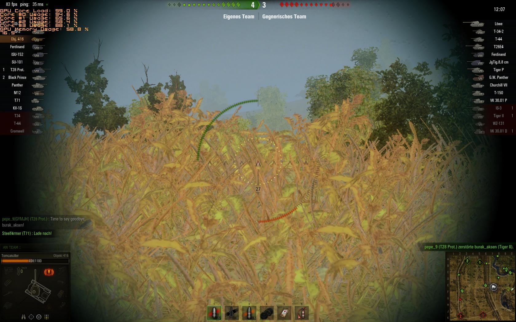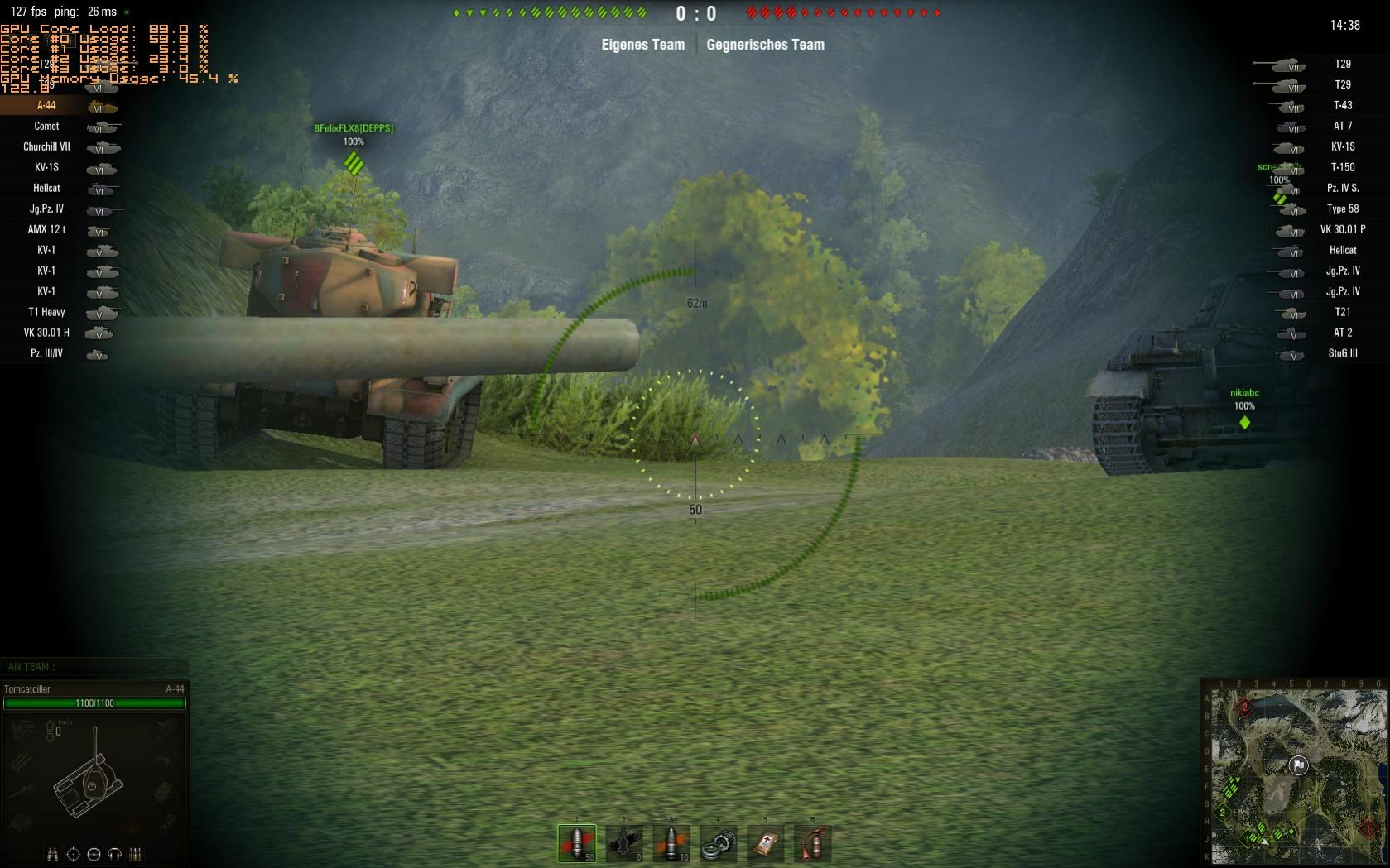 Nundenn, normalerweise Spiele ich WoT mit reduzierten Details weil mich zuviele Details nur ablenken. Ich habe das High Preset gewählt und 3 Effekte abgeschaltet.