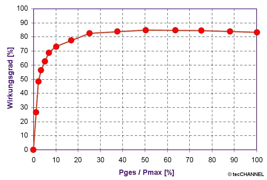 Also grob gesagt, wenn du 100W entnimmst bei einer Effiziens von 80% dann zieht das Netzteil 120W aus der Dose.