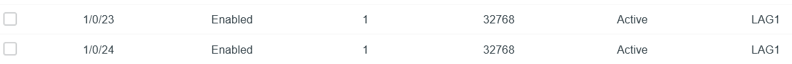Nach meiner Recherche liegt es daran, dass mein Switch noch nicht richtig für die LACP konfiguriert ist. Wenn ich versuche die Link Aggregation einzurichten, sieht es so aus (die markieren Ports sind die, an der die Diskstation hängt):