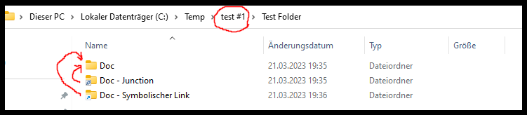 +s C:\Temp\test #1\Test Folder\Doc - Symbolischer Link