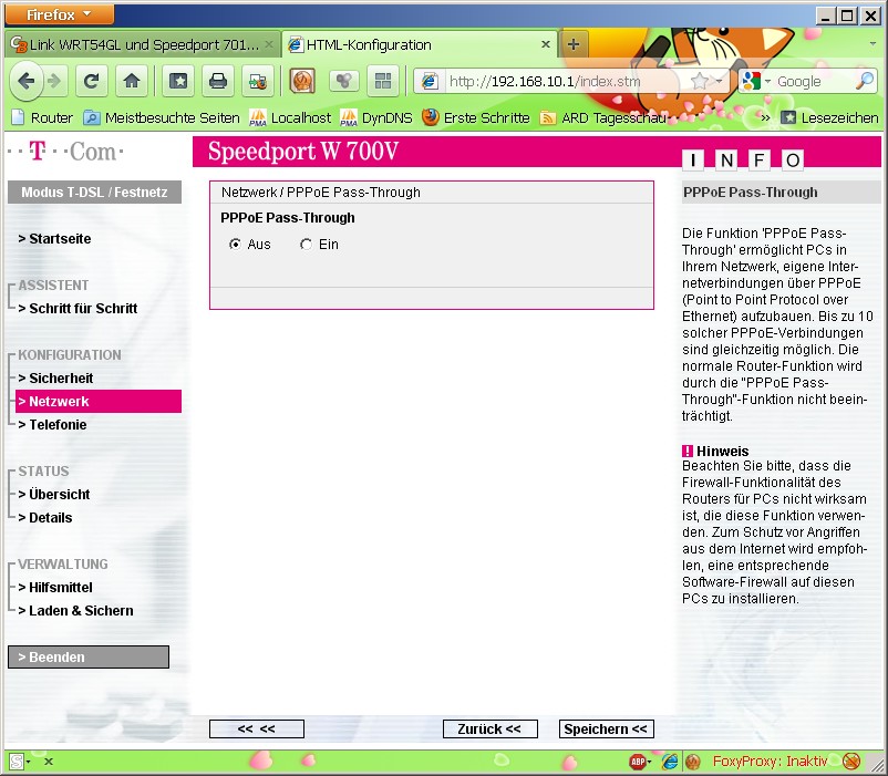 Ich habe einen neuen Syslink WRT54GL Router, und als Modem wollte ich ein Speedport 701 nutzen, jedoch bekomme ich es nicht eingerichtet.