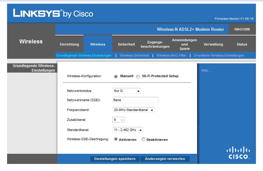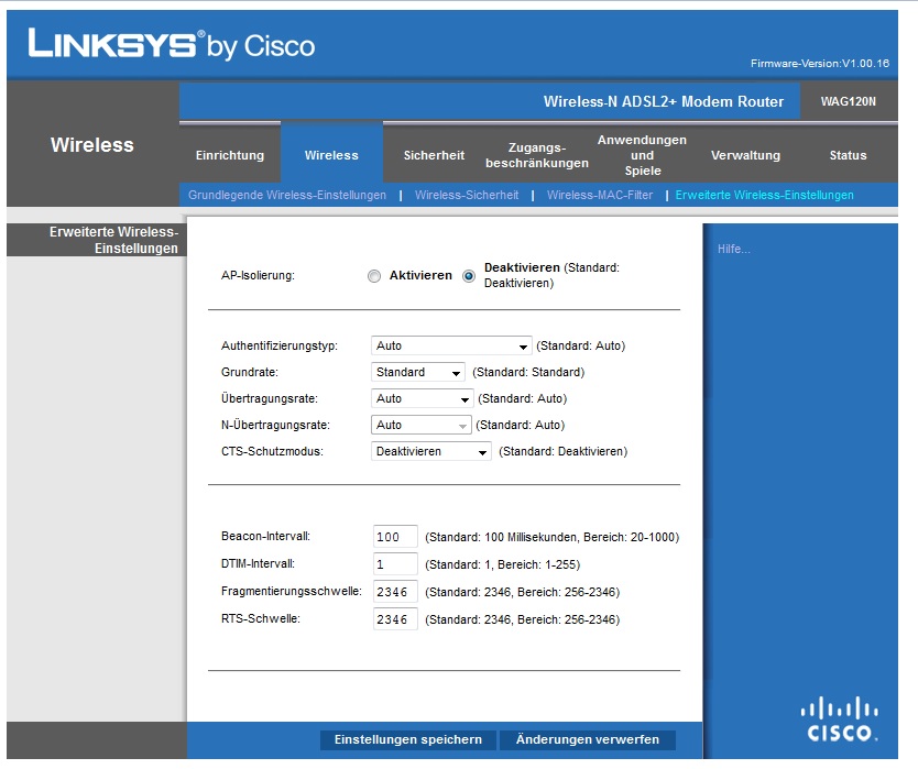 Nun wollte ich meine alten WAG120N der ich vorher nutzte als wlanrouter nutzen.