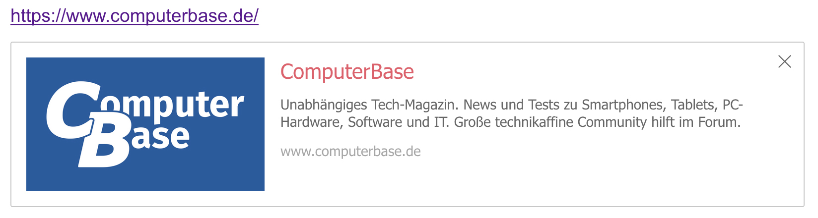 Weiß hier vielleicht jemand, ob es dort auch möglich ist eine Linkvorschau zu erstellen, wenn ich ins Mailprgramm einen Links einfügen, kommt immer einen Vorschaufenster, wodurch eine höhere vertrauen erzeugt wird, als wenn nur ein Link vorhanden ist.