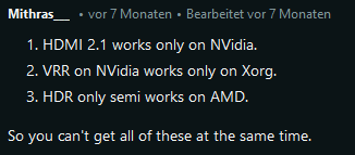 So bringt mir das weiterhin nichts... Gleiches mit HDMI 2.1 HDR und VRR. Scheint wohl auch massive Probleme zu machen, wenn man meinen Suchergebnissen trauen kann...