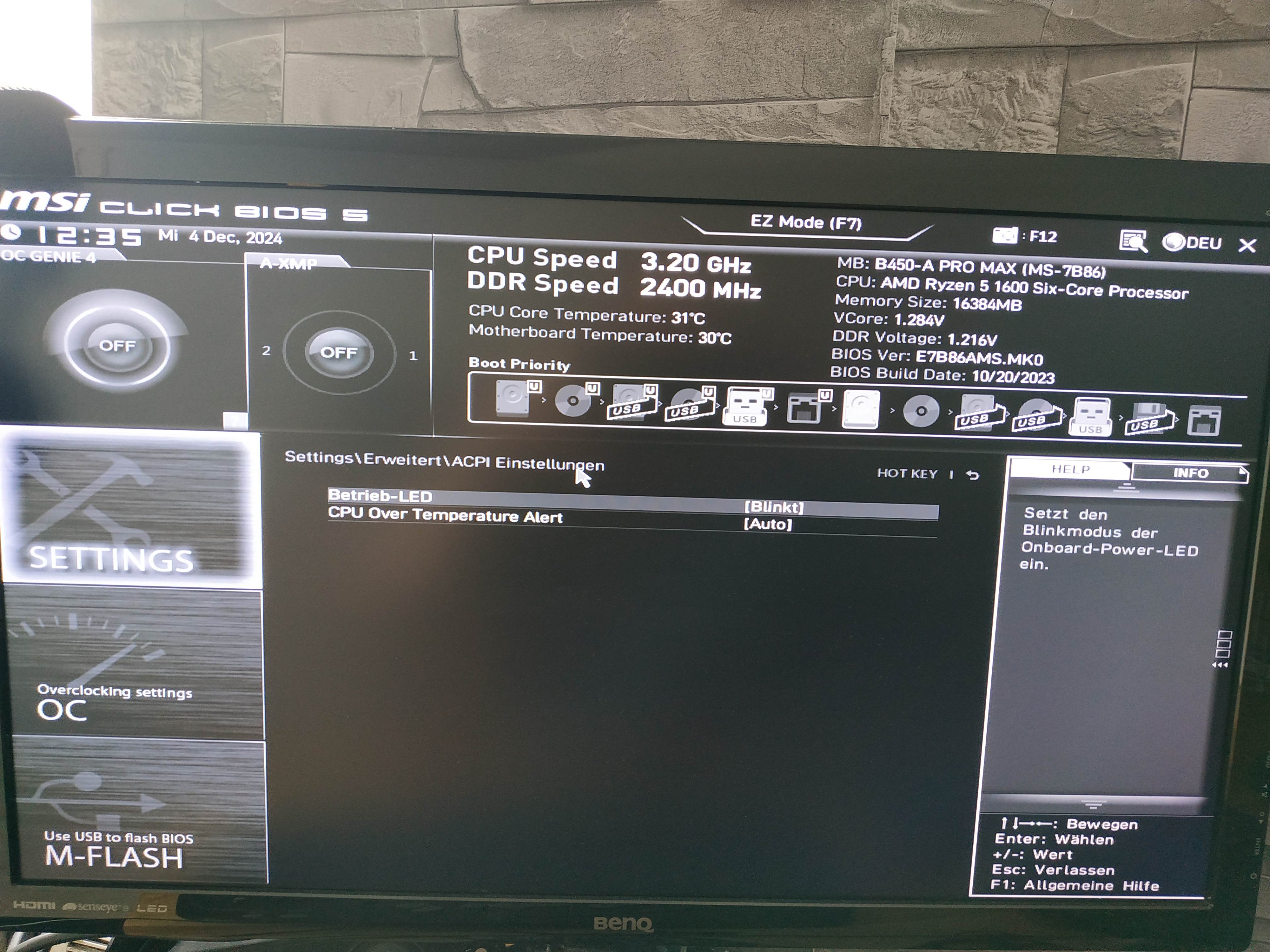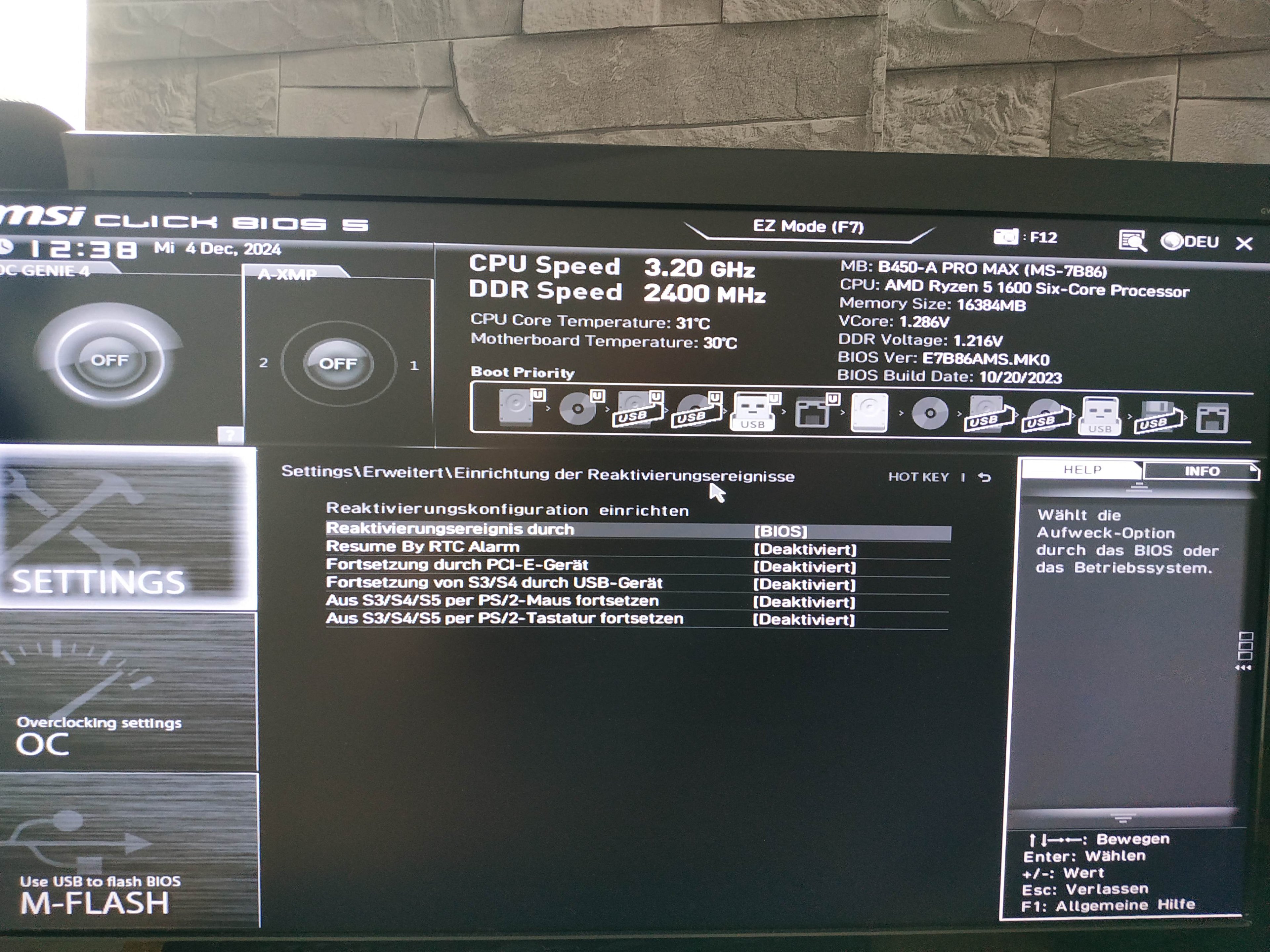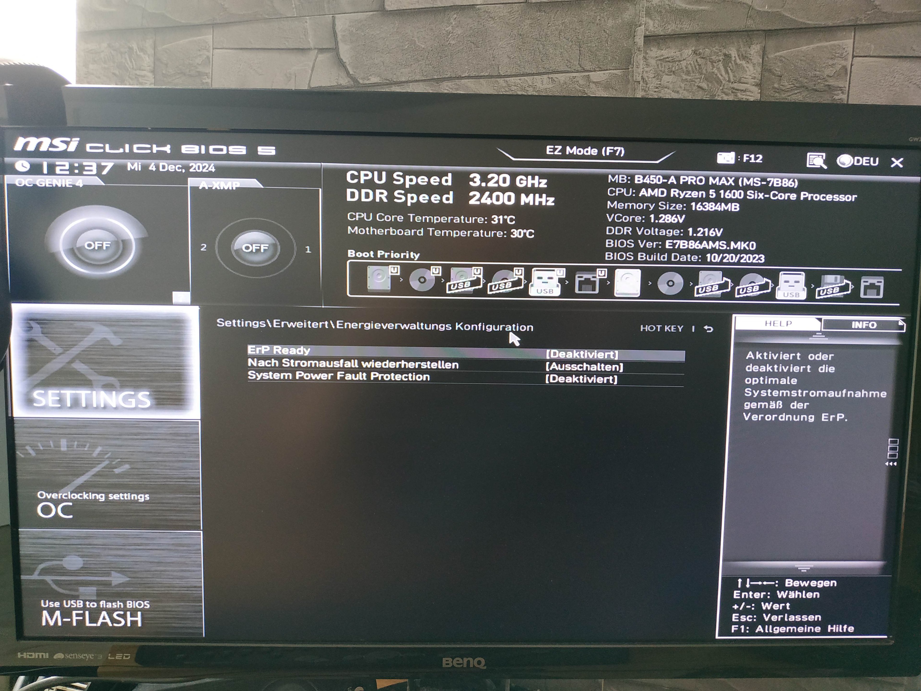 Anfang 2021 Neukauf aller Teile zusammen gebaut WIN10 drauf fertig. Ich hatte zwar Dateien vom alten PC (WIN7) mit herübergenommen, welches eigentlich bis auf die Daten meiner E-Mail-Accounts funktioniert hat. Gute 2-3 Monate später einfach Absturz und WIN10 ist nicht mehr gestartet. Seitdem steht das Gerät nutzlos in der Ecke, da bisher 2 Handys und Laptop zur Verfügung standen. Nach einem Umzug wollte ich ihn jetzt wieder zum Laufen bringen, es gab eine neue M.2 FP und wollte Linux installieren.|Moppel| schrieb:Was war denn vorher mit dem Computer?