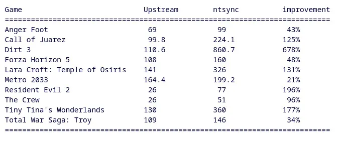 Krik schrieb:Es synchronisiert Datenstrukturen beim Multithreading und paralleler Verarbeitung effizienter als es Wine (und Proton) kann, weil es auf Kernel-Level läuft. Das kann je nach Anwendung für einen deutlichen Performance-Schub sorgen.