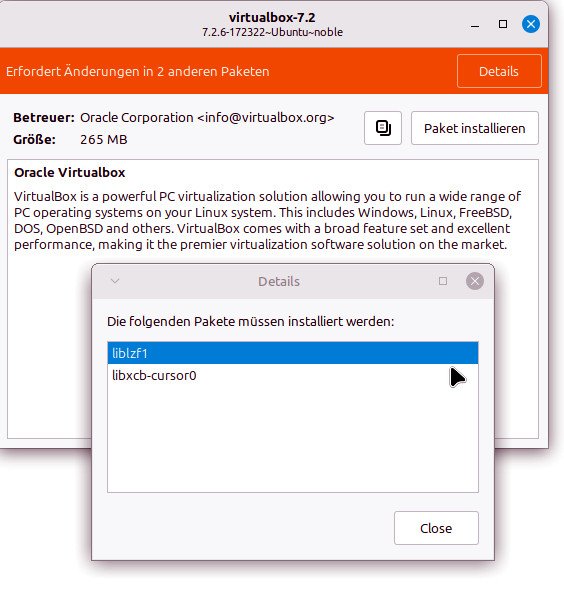 virtualbox hängt ab von virtualbox-dkms (>= 7.0.16-dfsg-2ubuntu1.1) | virtualbo