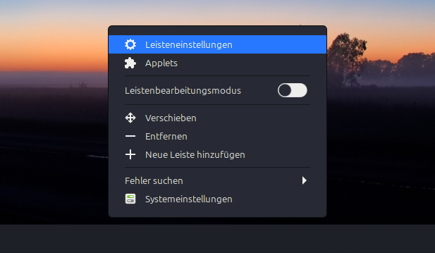 Ich mache einen Kontext-Klick auf die Leiste und wähle "Leisteneinstellungen" aus, nichts passiert.