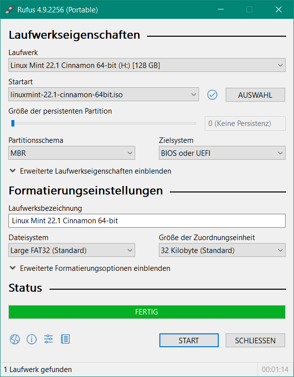 ich möchte gerne Linux Mint auf ienem USB Stick installieren um es zu testen und eineige eigene Programme installieren zu können die dauerhaft meine einstellungen speichert.