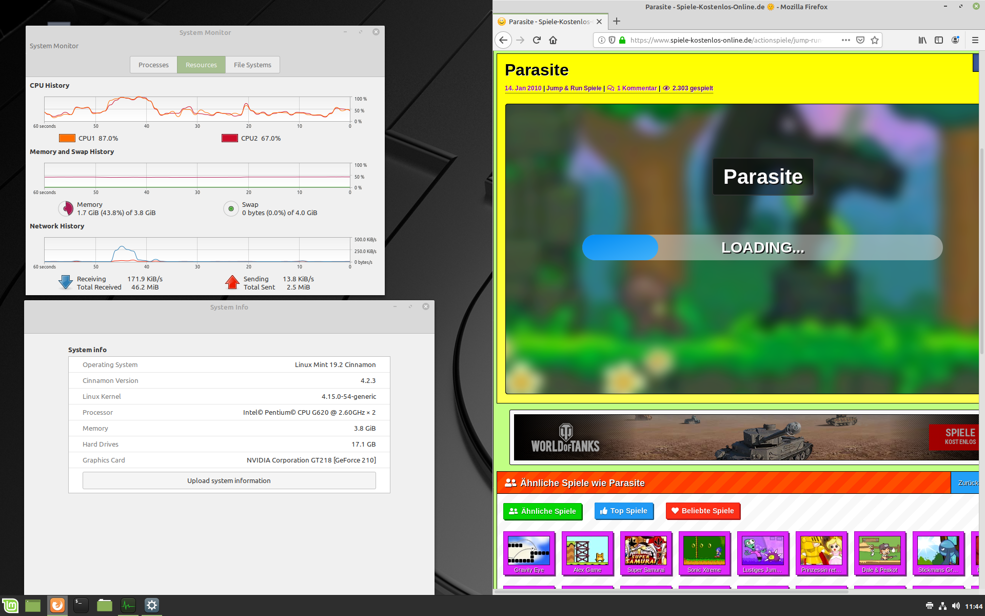 bei meinem Vater ist seit einiger Zeit die Cpu-Auslastung massiv angestiegen, und das, obwohl kaum etwas gemacht wird (mal Office und ansonsten nur youtube/Facebook/Flash Spiele). Auch wenn der Rechner natürlich schon älter ist, und die Cpu nicht mehr "rockt", dürfte doch so etwas nicht sein?